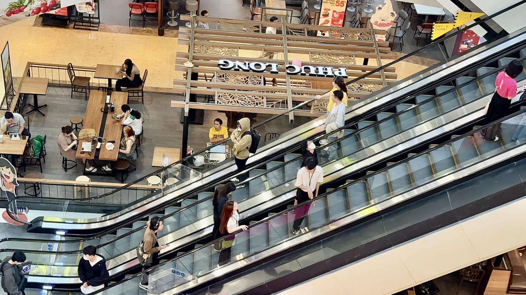 Ghi nhận tại Vạn Hạnh Mall vào chiều và tối ngày 27/4/2025 – một buổi chiều Chủ nhật, khung cảnh tại đây vẫn khá tấp nập người ra vào, dù có thể hơi vắng so với trước, nhất là vào một ngày cuối tuần tại một TTTM lớn như vậy.
