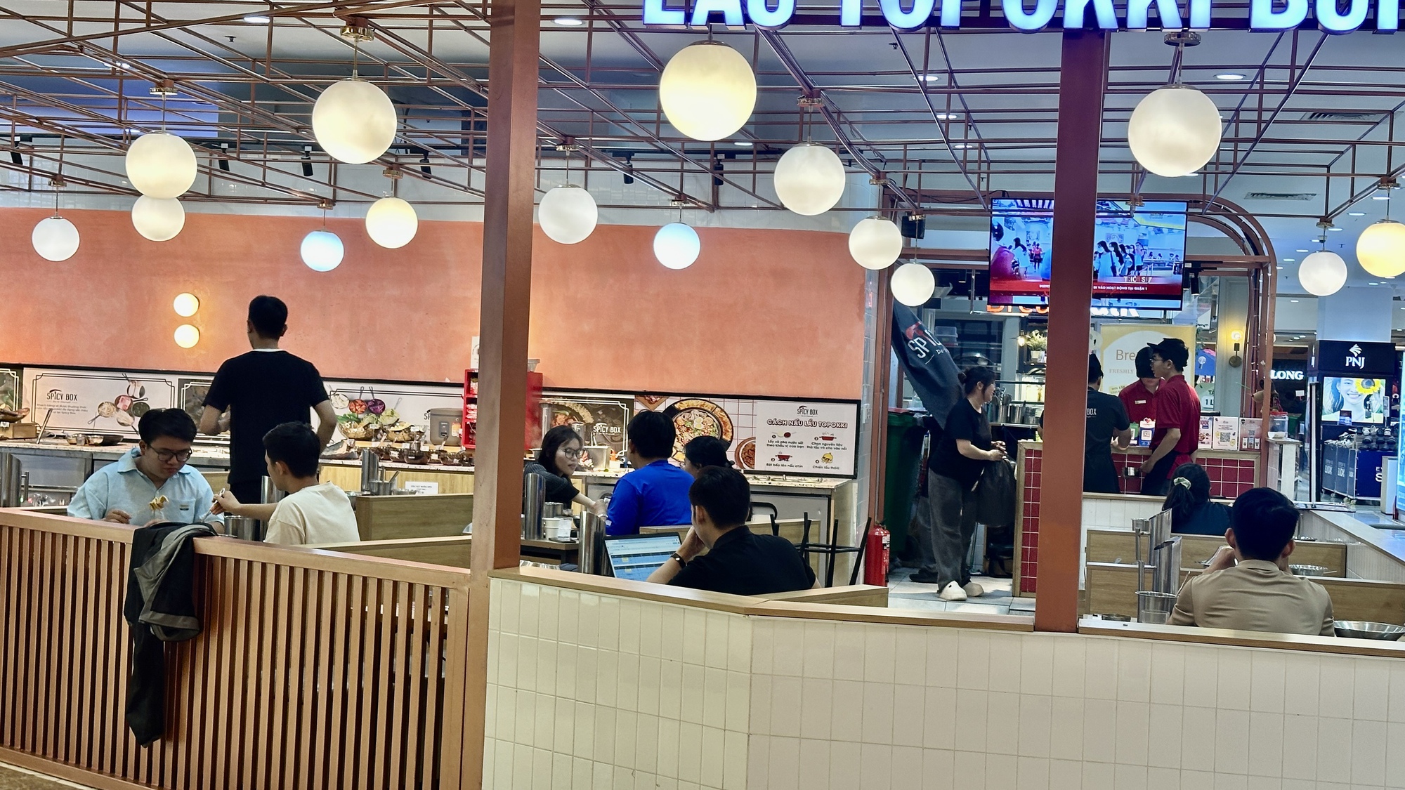 Các hàng ăn uống ở tầng trệt và rạp chiếu phim ở tầng 6 đông khách hơn hẳn