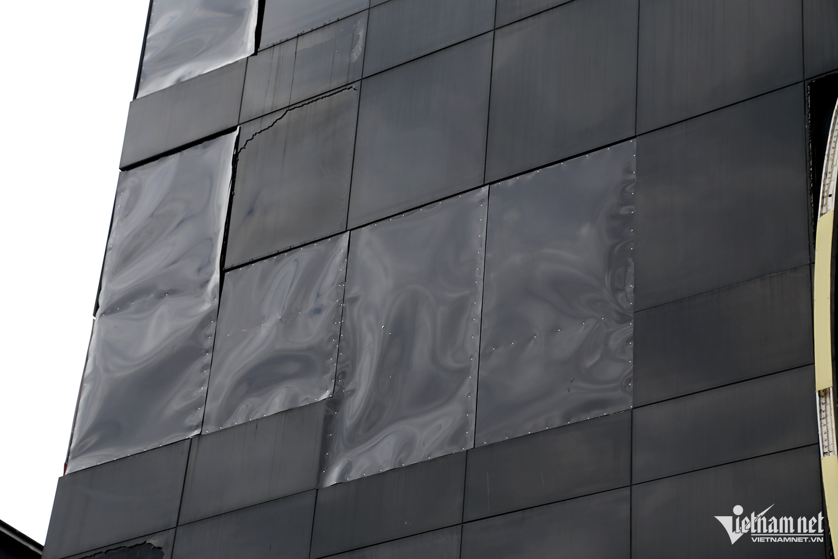 Phần tôn hư hỏng vẫn được để trước cửa Cung quy hoạch, hội chợ và triển lãm tỉnh Quảng Ninh. Ảnh: Phạm Công