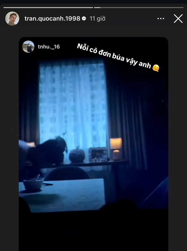 Giữa lúc mối quan hệ của cặp đôi nhận được sự quan tâm, động thái của MLee và Quốc Anh nhận được sự chú ý của netizen. Trên story trang cá nhân, nam diễn viên mới đây đã chia sẻ lại khoảnh khắc trong bộ phim Bộ tứ báo thủ và viết dòng chú thích: “Nỗi cô đơn bủa vây anh”.