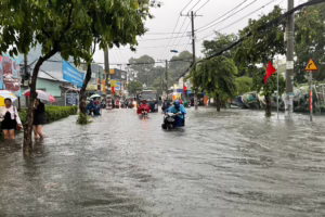 Mưa gây ngập trên đường Đặng Thùy Trâm